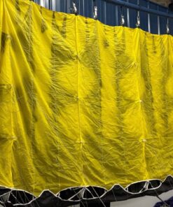 Used skydiving gear, including main and reserve parachutes, containers, and accessories.