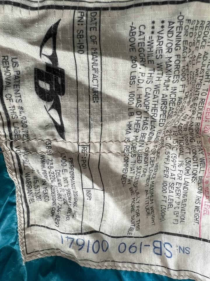 According to Performance Designs and XDream Skydiving, the 190 sq ft model features the following: